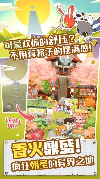 病病神社建造中游戏有着非常q萌可爱的动漫卡通画风。游戏的设定非常的新颖,玩家在游戏中需要建造各种不同的神社出来,满足各种我神灵的要求。有各种装扮可以去建造,发挥你的想象力吧!