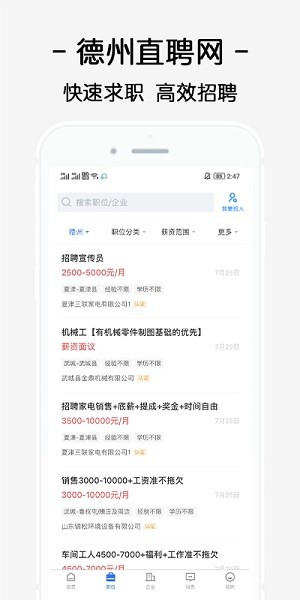 德州直聘网找工作是一款提供求职招聘的软件,拥有海量优质的职位信息,可随时进行搜索查询,更便捷的投递简历和企业沟通面试,帮助用户快速找到满意工作。