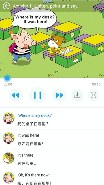 课本是动画的,里面的画面精美,人物饱满,引起孩子的兴趣