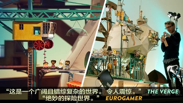 - 纯手工建造的游戏世界。游戏中所有的场景都是由纸、卡纸、胶水、微型灯和马达等构成。