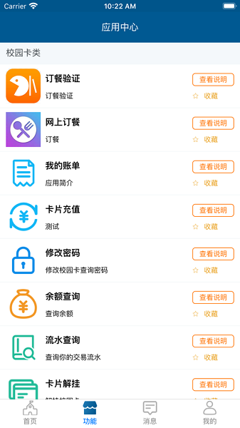 聚合校园卡功能服务,如预定、考勤、迎新注册离校、缴费、门禁、校友等