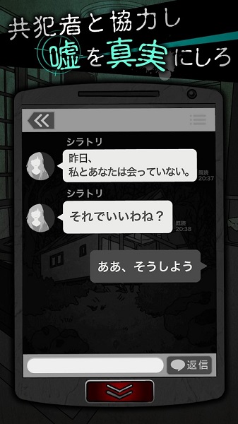 与大学同一个小组的同学们一起到一个别墅里旅行。夜里,我.....把朋友从2楼的阳台上给.....那些家伙们的直觉很厉害,我是犯人的事情一定会被发现的。对了?!只要我紧紧抓住把柄让他们闭嘴不就好了吗?游戏中,如果有人怀疑你是犯人,你必须快速的掌握到对方的弱点,让他闭嘴!