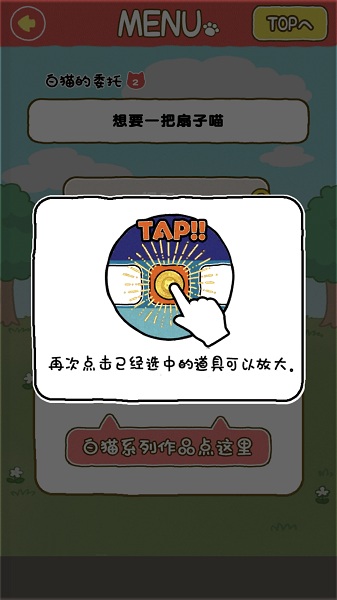 本作拥有40页漫画的超长剧情和15个关卡这次我们的白猫会有各种各样的请求拜托您,为了他的面包房请帮帮他吧,各种各样的精彩有趣的玩法内容,请完成委任栏里面的任务来获得大量的钥匙奖励,蠢萌蠢萌的白猫的逃脱游戏。请抱着放松的心情来体验吧。