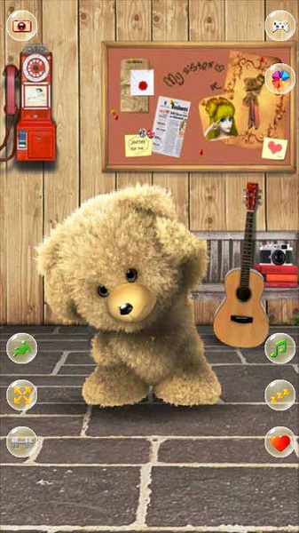 会说话的泰迪熊(Talking Teddy Bear)是一款类似于会说话的汤姆猫的游戏。让可爱的泰迪熊重复你的声音,和可爱的泰迪熊一起玩耍吧。你可以摸摸它的头,和它进行一些简单的互动,适合所有年龄层的玩家。