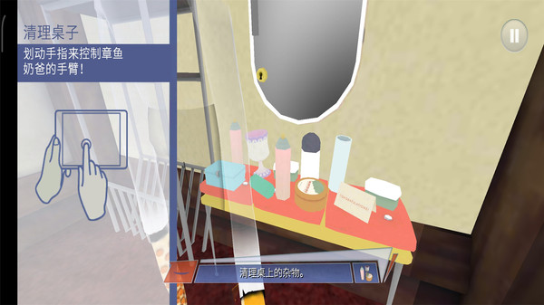 游戏玩法轻松简单,没有既定的任务要求,玩家们将扮演章鱼奶爸,完成宝宝以及妻子的各种要求,动动手指来完成各种任务,帮助妻子完成日常家务活,并且好好照顾可爱的女儿。