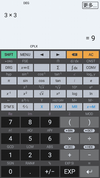 计算器最多可包含100位有效数字和9位指数。它检测重复的小数,并且其中的数字也可以分数形式输入或转换为分数。您也可以切换到“表达式”模式,以自然的方式编写表达式并观察计算。尽可能简化表达式,并使用分数,平方根和,将结果显示为表达式。