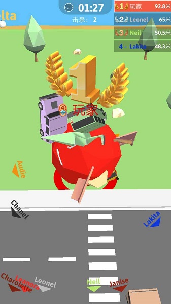滚动大作战是一款休闲益智类io竞技对战游戏,该游戏整体画面清新,题材上有些类似于抖音上热门的“黑洞大作战”,在这里你将需要在2分钟之内操纵着滚动的球不断的以粘贴更多合理的物体来实现变大为目标翻滚于这个神奇的城市之中。
