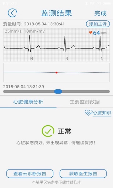 心蜜软件能够完美地与心脏检测设备相连接,在app上直观清晰地显示心脏的状态,用户可以根据监测结果来进行判断,依据结果提供多种可行的方案,保护心脏健康。