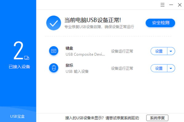 usb宝盒电脑版将多种实用的功能整合在一起,能够对于电脑硬件驱动进行全面扫描,键盘、鼠标存在问题都能够显示出来并且提供修复方案,支持配招、鉴定u盘等等功能,欢迎来下载!