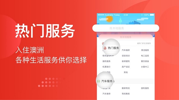 今日澳洲app是在澳大利亚生活的华人必备的手机应用,致力于提供优质而且全面的生活服务,澳洲新闻资讯一手掌握,找房找工作、社交交友等等全都支持,带来很大方便。