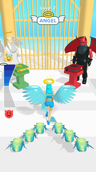 以天使与恶魔为背景的动作闯关手机游戏.游戏中选择成为善良的天使或者邪恶的恶魔.游戏中还有各种陷阱.玩家需要根据自己的需要改变形态来解决这些困难!