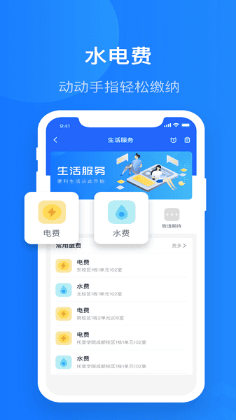 担心宿舍没电没水,动动手指轻松缴纳水电费。支持在线投诉与申诉,院校通让关爱无微不至,沟通随时随地。