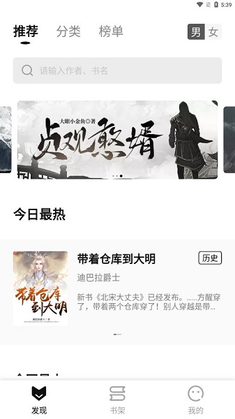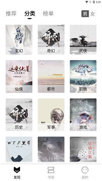 2、用户能够发现各种类型的小说,以后就能让您选择小说进行查看。