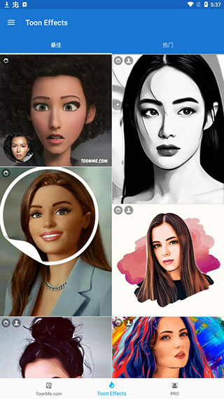 ToonMe中特殊的人工智能驱动算法可以立即生成手绘质量的出色画像;