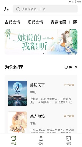 - 精选全网各类榜单:带你感受稚嫩的青春校园爱情,带你畅游武侠世界的风风雨雨,带你领略科幻世界里的神奇脑洞。