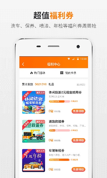 【车主福务】定期为车主提供线上线下的巨惠福利,含周边游券,年检券与喷漆券等。