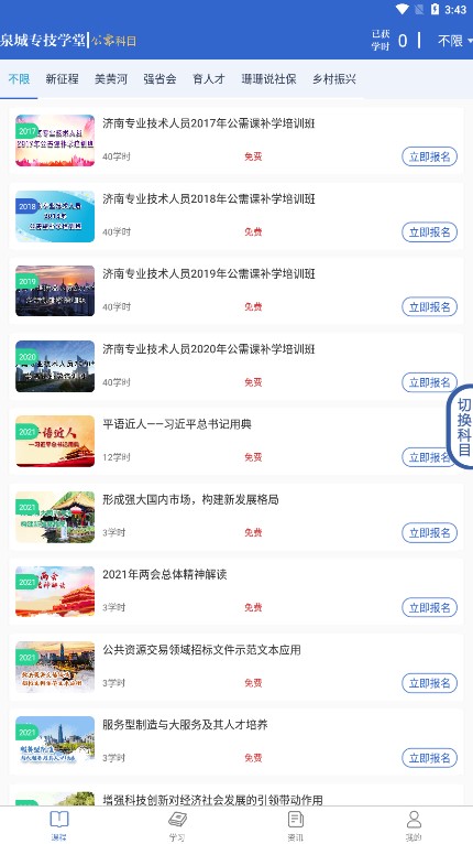 泉城专技学堂app作为济南市专业技术人员线上教育平台,本app内含有海量的课程资源,多种科目任你切换,随时开启畅快的线上学习,能够多方面地提升自己的知识技能。