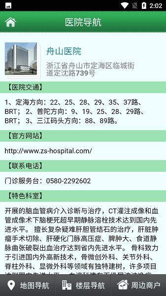 掌上舟医app就是专为浙江舟山的用户打造一款医疗平台,你能够直接在手机上查看到医院的位置也能根据你的所在位置给你指明去医院的路线,在手机还能够直接进行预约挂号,过去直接就诊,再也不用排队了!