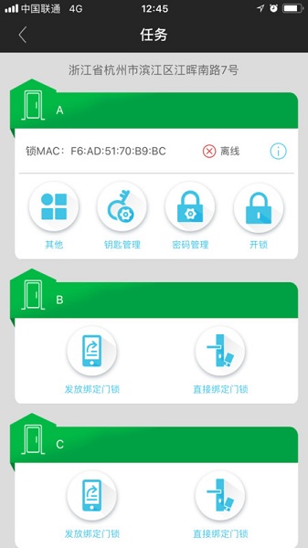 您可以通过手机方便的管理公寓门锁的使用权,使用这个工具可以查看和接收下达的指令,根据指令对门锁进行操作。