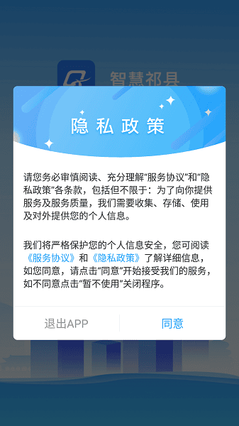 智慧祁县app给山西的用户打造的本地综合型生活资讯平台,在这里每天都能够了解当地发生的最新大事,还能够再这里查询或者办理生活中的很多便民服务,天气,公交,风景,美食这些类型在这里也有涉及,让你快乐生活!
