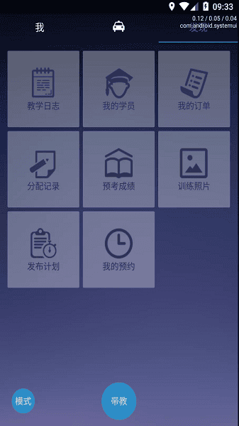 辽宁驾培教练端是专注教练教学使用的APP,指在帮助教练更好教学,管理学员,日常办公等功能,结合我们运管的数据资源,帮助教练实现互联网教学和提供个性化服务而作,其主要功能包括了:教学日志、我的学员,发布计划,我的预约,分配记录,我要带教,训练照片和我的订单管理及个人中心这几大模块。