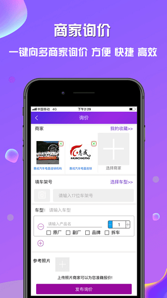 通过简单几步即可发布配件采购单,精准推送买家卖家,轻松等待卖家报价。