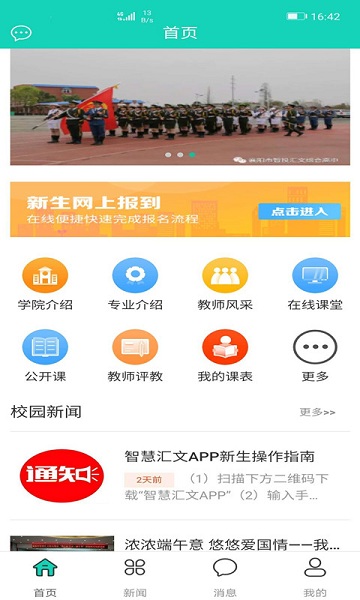 智慧汇文能为学生提供各种各样的服务。学生能在app中了解学校中各种各样的新鲜事儿,能查看自己学院所有专业的详细信息,新生可以利用app网上报道,避免了线下排队办理手续的繁杂过程。