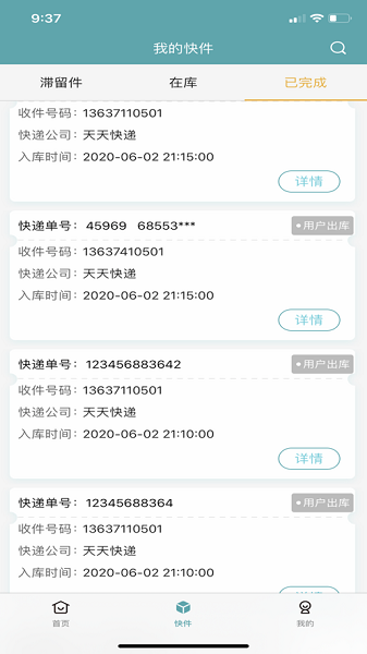 - 可查询已派件的包裹状态、滞留件的提醒。