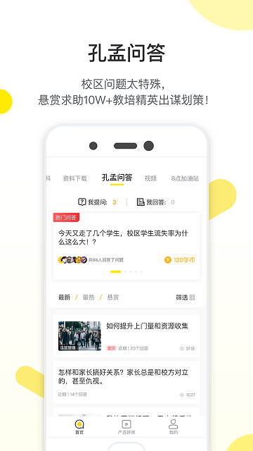 民办教育人专属的线上问答交流社区,200+教培大咖时刻在线,有问必答,15万+行业翘楚碰撞思维。办学难题以及其他细小办学疑惑都能在线实时获得解答,与全国校长共同进步,扫清校长办学道路的点滴障碍。