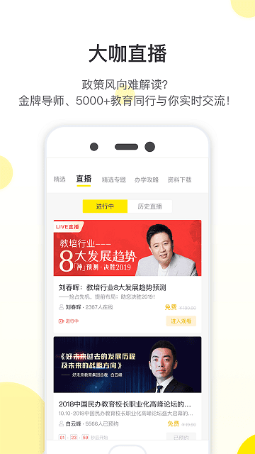 教育家社区每周邀请一位行业大咖,足不出户,0距离传道授业,最新最热的办学运营经,最受关注的政策风向,一顿饭的时间,为用户透彻解析。还有落地工具资料包和课程等福利免费附送。