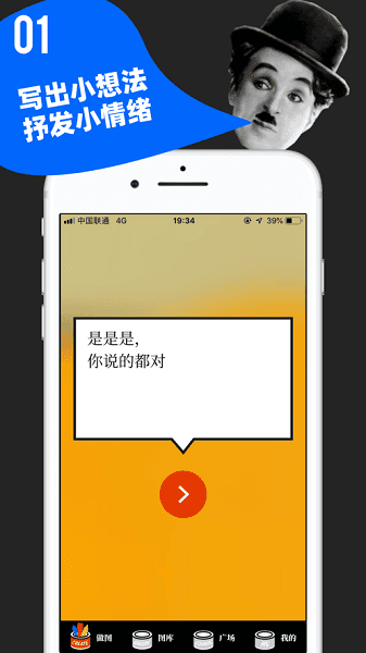 当你有了小情绪,想立刻发个朋友圈,发现……没有合适配图!!!这个时候打开app,只需输入文字,瞬间几十张独特风格的图片已经为你挑选妥当,并且刚才输入的文字早已同步出现在这几十张图片上了!(不可思议.jpg)剩下的工作,选择一张一键分享到社交平台!