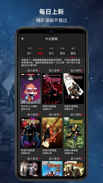 漫威无限app是一款专门为广大惊奇漫画的爱好者们提供的漫画软件,在这里你可以看到最新最全的漫威系列漫画,而且都是高清资源,全新全异宇宙系列也将登陆软件中。