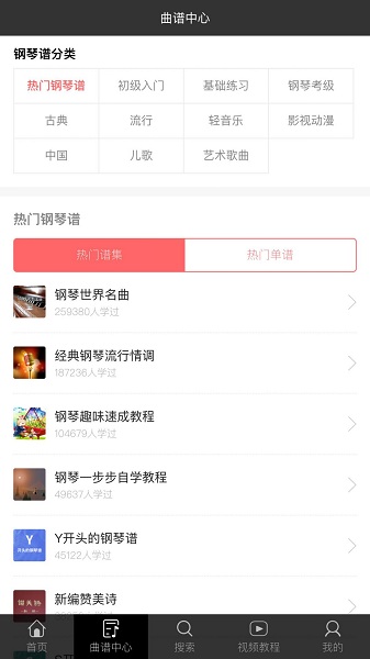 平台提供的曲谱内容非常的丰富,各种经典的钢琴曲谱都能轻松的找到