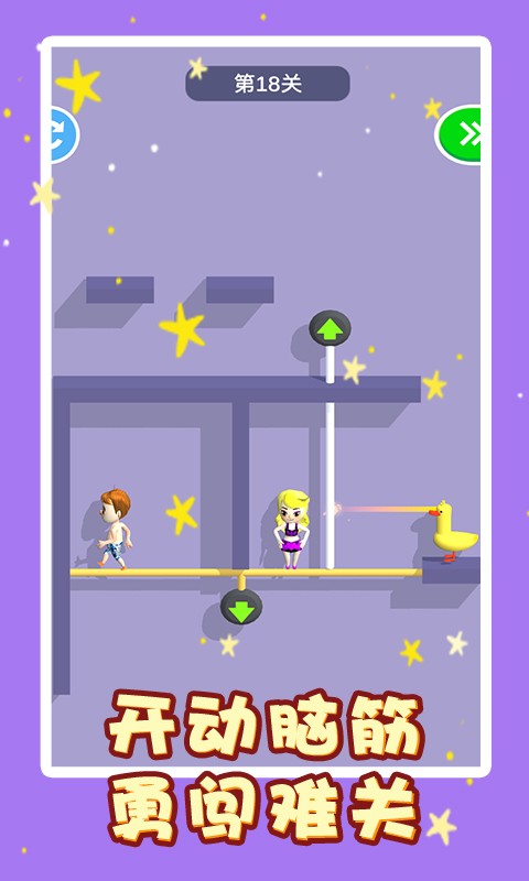 时下非常热门的抽铁棍玩法闯关游戏,这是非常考验智力的解谜游戏,你会面临超多不同的关卡,需要抽掉铁棍最后将小女孩成功救出,每一次都需要将铁棍按照特定的顺序抽掉,假如你不小心抽错了,那么小女孩就将面临淘汰的后果,所以一定要有充分的思考再行动哦!