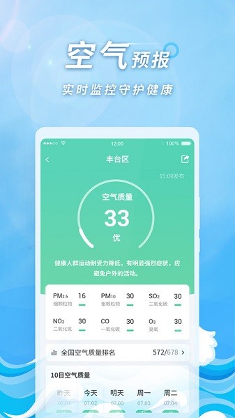涵盖全国2462个空气质量监测点信息,覆盖全国所有地级市,并提供长达10日的空气质量预报。