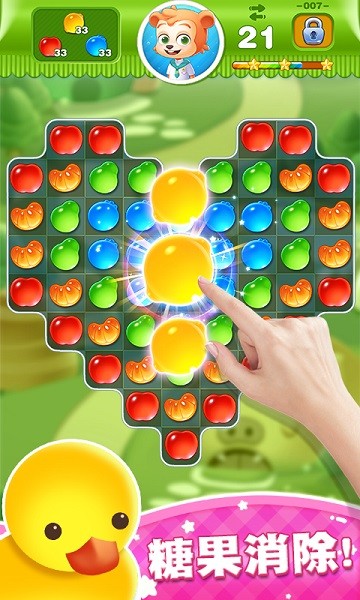 糖果世界传奇游戏有着十分可爱的游戏画风,所有的角色形象都十分萌萌哒,玩家只需要动动手指就可以完成消除操作,大量给力的道具助你闯关,越到后面关卡难度挑战就越高。