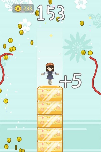 游戏需要玩家操控女孩进行跳跃,在游戏中会从左右两边出现豆腐,玩家需要进行预判让女孩在适当的时候起跳并获得完美,获得的完美越多金币越多,金币可以解锁皮肤,来装扮你的女孩。
