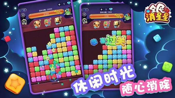 全民消星星游戏有着多样的关卡内容,游戏画面色彩鲜明绚丽,玩法操作极为简单,为广大玩家带来无限的趣味,手指点击即可消除,规则容易,大量游戏奖励等你来领取。