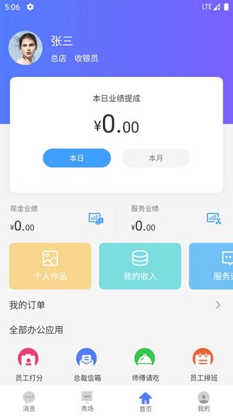美容美发管理应用,在这里员工可以查看自己的业绩和服务订单,店长可以查看所有员工的业绩和员工的签到情况,公司可以查看所有门店的业绩。