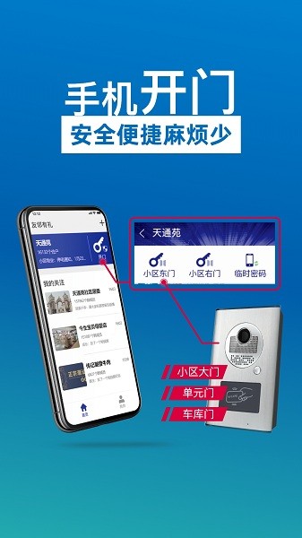 一键开门,完成信息绑定后,可分别对小区不同大门的门禁系统解锁