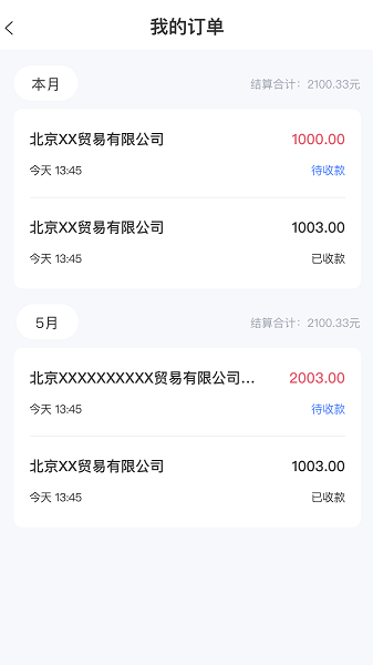 提供我的订单版块,用户在这里能够看到各个订单信息,了解收款状态