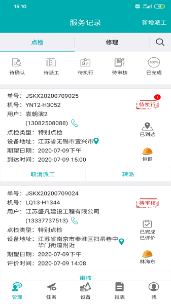 掌握每次任务的审核进度,查看各种不同的维修任务