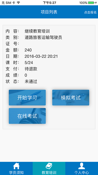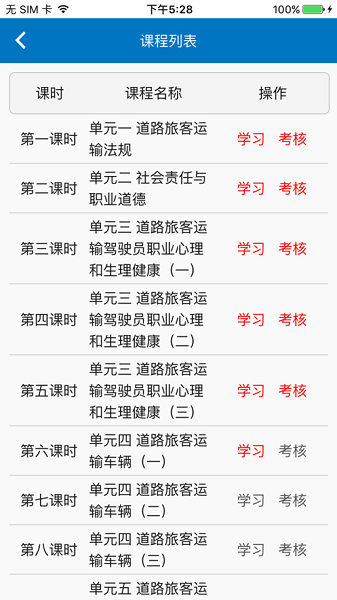 - 随时进行模拟练习或考试,利于知识的巩固和学习效果验证考核成绩自动上传到运政系统,让管理更加高效根据需要进行重复学习,资源循环使用