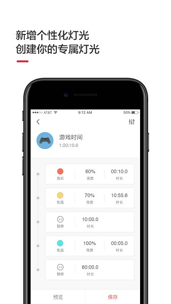 设定灯光在指定时间的状态,可以用作早安唤醒等功能。