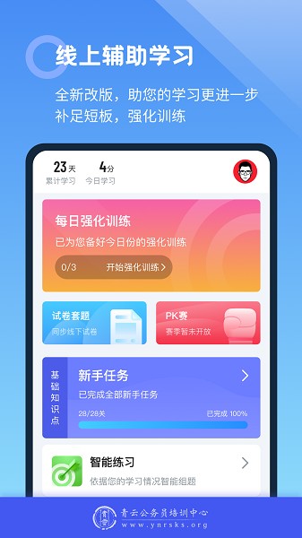 本app提供青云公务员培训中心独有真题模拟演练、日常任务练习、和趣味常规赛。多样的答题模式,沉浸式体验让学员获得更多答题相关技能,提升学员考试综合能力。