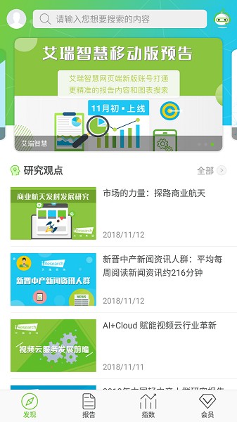 艾瑞研究院app将海量的商业数据进行收集整理,通过专业化的科学分析,为各大企业提供中肯的建议,助你发现新的商机,能够提供出色的职业化赋能。