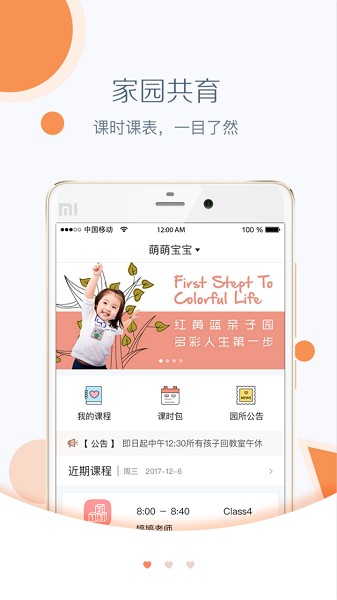 红黄蓝亲子园家长端能够建立起家校保护体系,帮助各位家长们加强对于孩子的管理,随时和老师联系,知晓孩子在学校的所有动态,课程一目了然。