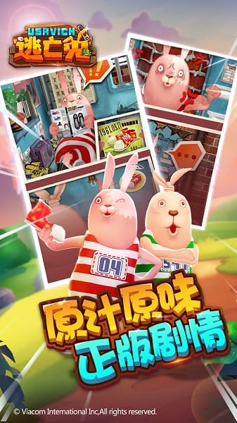 游戏剧情还原动画故事,从兔子们的监狱生活开始,再到它们愉快的逃亡之旅。机械列克、民警兔和夜来香等等原作中出现的经典蠢萌角色都会登场,让你觉得不仅是在玩一个游戏,更是在参与《逃亡兔》的故事!