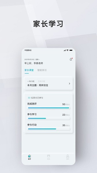 一款面向教师、学校和教育主管部门的家校共育平台,助力家校共育,让学校家校共育工作更高效,让家庭教育更科学,教师用户可以进行点名、签到、发送课程信息!及时向家长用户反馈孩子在校的学习状况,提高老师教学效率!