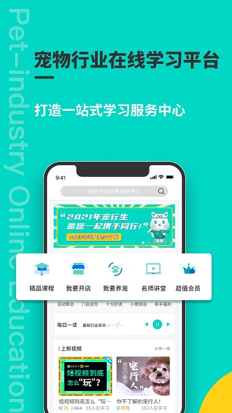 宠行生app是从事宠物行业人员使用的线上学习软件,有着业内最全的宠物知识,海量课程应有尽有,让你了解宠物行业发展,知晓最新最热的资讯,提升个人的知识技能。